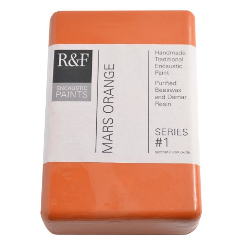 R&F encaustic paint, 333ml in mars orange is a bright, very light red which appears almost pinkish against darker colors. R&F encaustic paint is composed of 100-percent pure pharmaceutical grade beeswax, singapore-grade damar resin and chemically pure pigments. Beeswax is impervious to moisture making encaustic paint extremely durable. There is no need to varnish or protect your painting with glass. It will not deteriorate, yellow or darken. Encaustic paint is kept molten on a heated palette. It is then applied to an absorbent surface and is fused to create a variety of effects. Encaustic goes from a liquid to solid state and back again in seconds giving you the opportunity to add layers without disrupting your composition. Once the surface has cooled, the paint has reached a permanent finish, but with heat, you can revise and rework your painting minutes or years later! This highly versatile medium can be polished to a high gloss, carved, scraped, layered, collaged, dipped, cast, modeled, sculpted, textured and combined with oil.